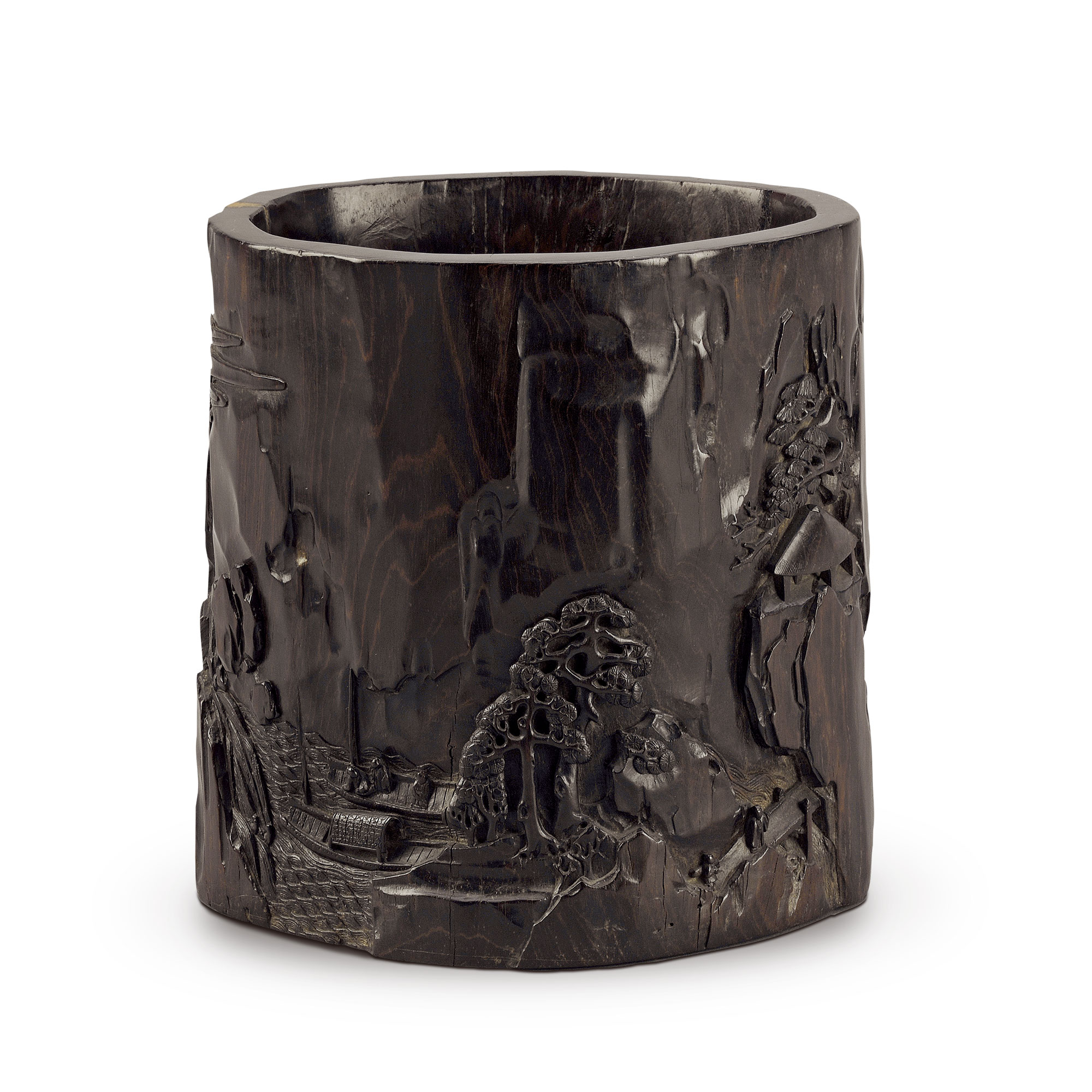 紫檀百宝嵌人物故事笔筒 清乾隆