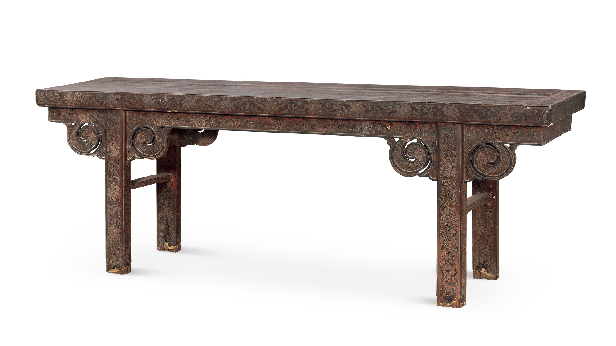 剔犀有束腰鼓腿彭牙云纹长方几 明晚期