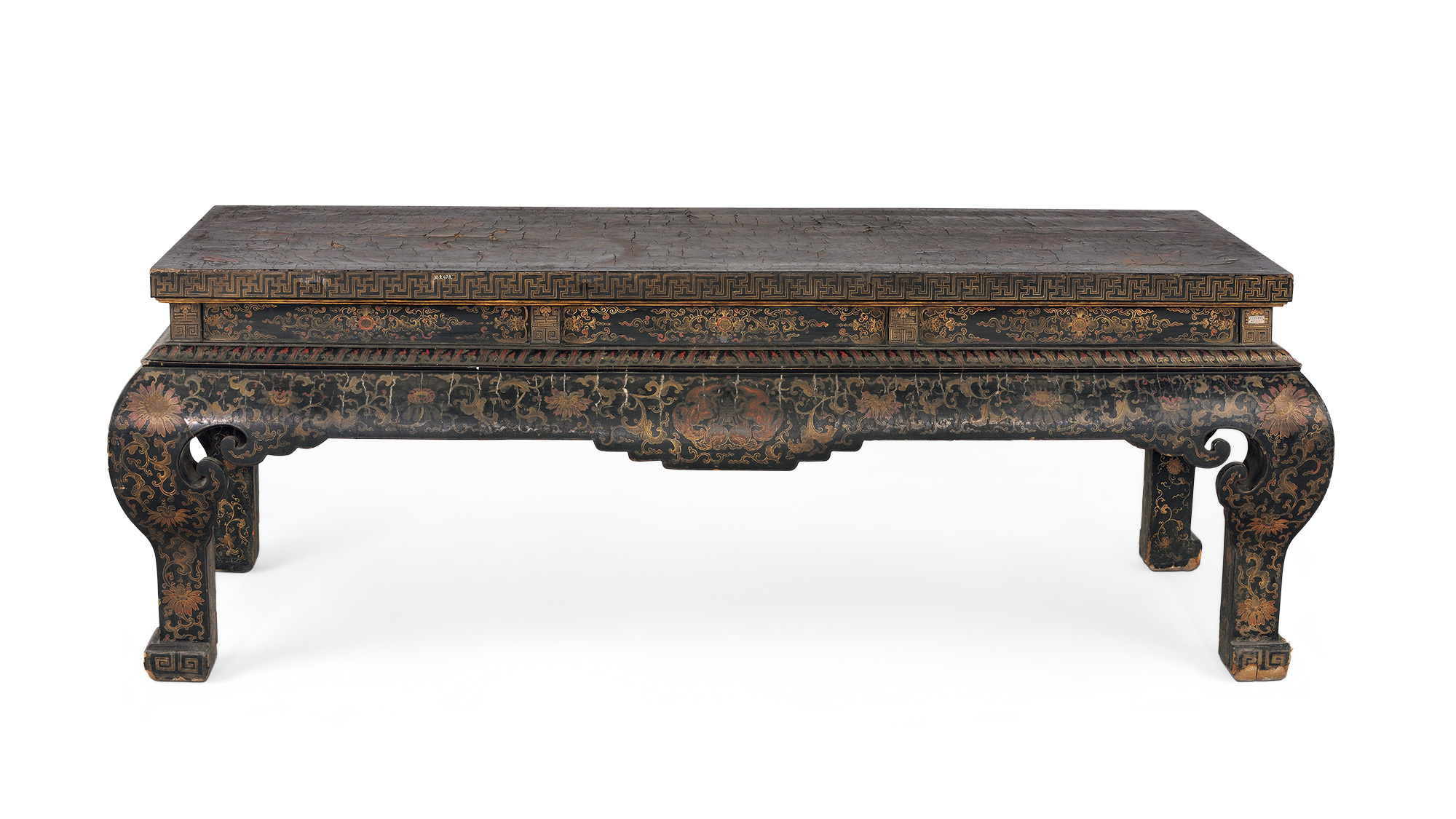 黑漆描金彩绘福寿凤凰花卉纹供桌 清初