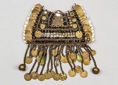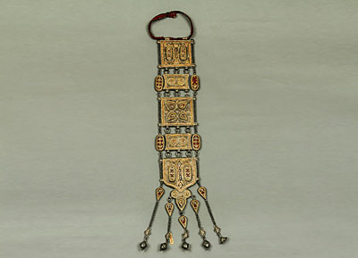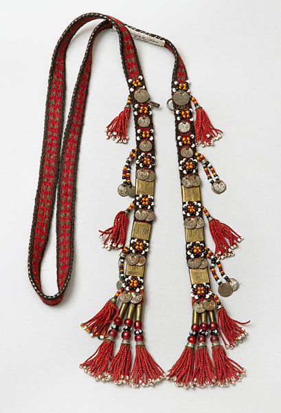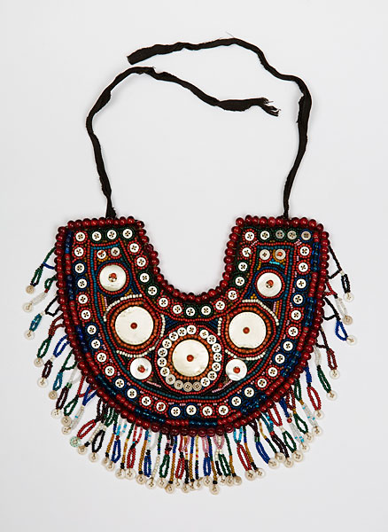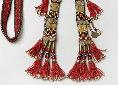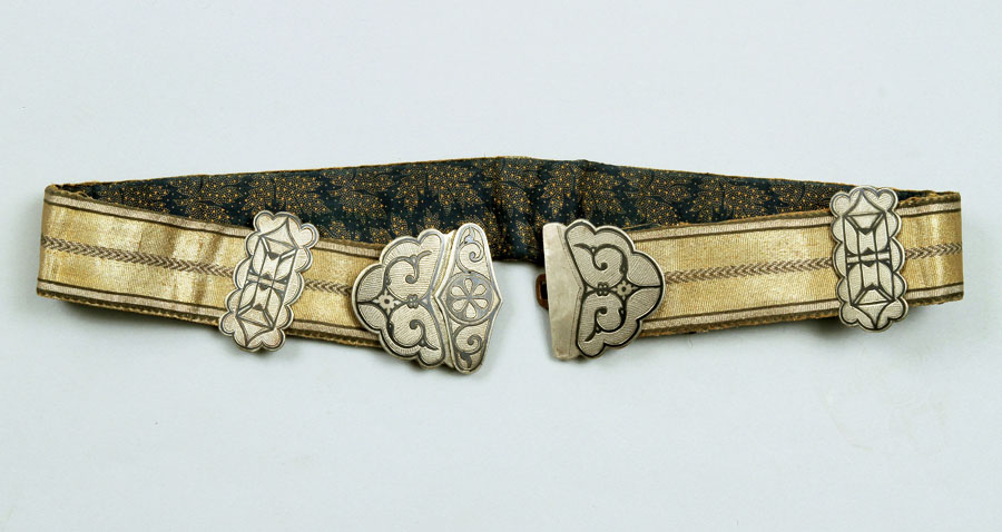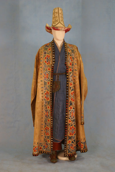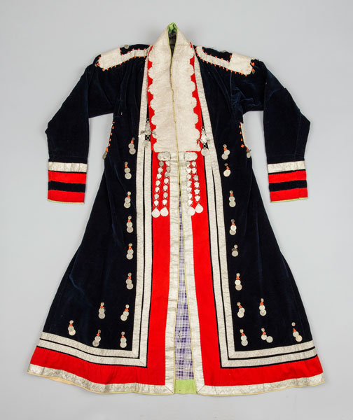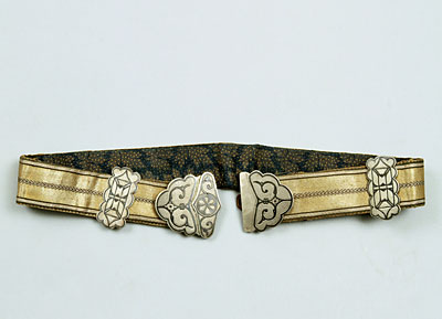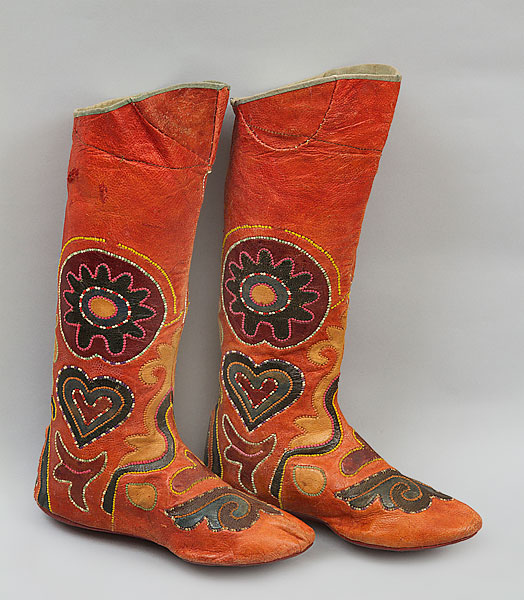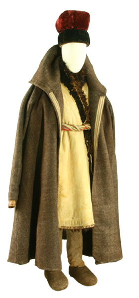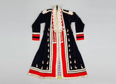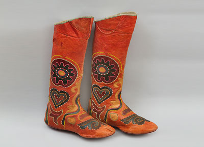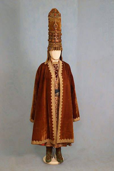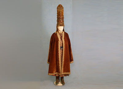 19世纪下半叶,收腰短上衣融入了哈萨克民族的传统服饰。冬季,皮毛是保暖的外套,男性一定会束腰带。哈萨克人的鞋主要有硬底高跟鞋、高筒靴,冬天会穿毡袜。男人戴各种皮帽或用白毡子制成的高帽。女性头饰为白色封闭式头套,脸部露出,上面包有丘尔邦(头巾)。在哈萨克众多头饰中占有重要地位的是婚礼头饰“萨乌克列”,如今它被认为是最具特色的民族符号。
