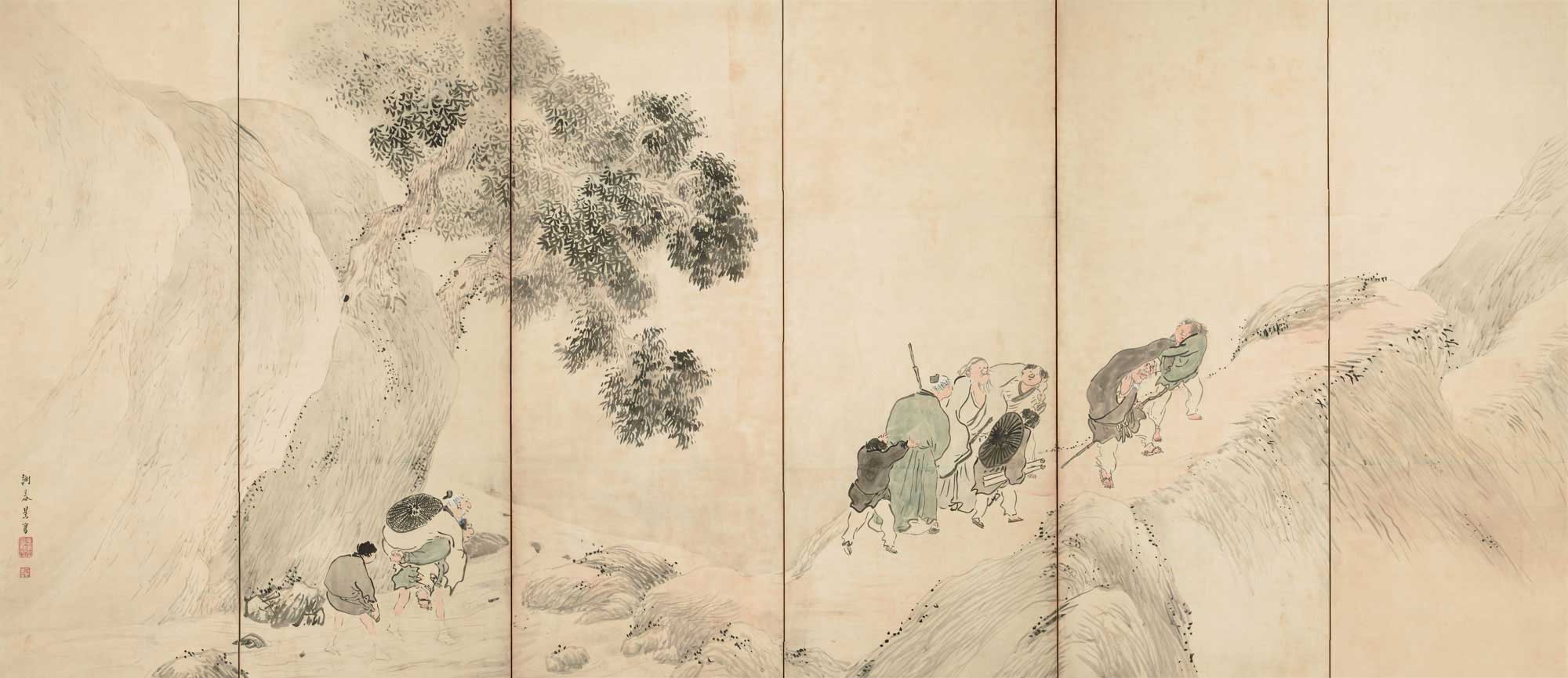 日本的文人画又称“南画”,是江户时代中期最有影响的绘画流派之一。它学习和借鉴了中国文人画的风格技法,并加入日本原有的绘画传统,将本民族的审美与意趣融合其中,形成了笔墨简练、色彩细腻、富于装饰和俳谐诗入画的民族特色。代表画家有祇园南海、柳泽淇园、池大雅和与谢芜村。