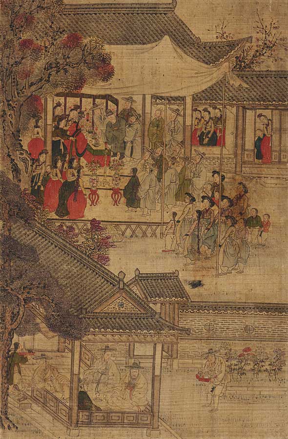 《平安监司飨宴图》生动地描绘了为欢迎新上任的平安监司而举办宴会的场面,由《浮碧楼宴会图》、《练光亭宴会图》和《月夜船游图》三幅画构成,分别表现在浮碧楼、练光亭和绫罗岛举行的三场宴会。虽然平安道地处距离朝鲜王朝都城汉阳较远的地区,但是平安监司这个职位却颇受欢迎。其原因是,平安道不仅为中国和朝鲜使臣往来的必经之路,而且在边境贸易中获利丰厚。
