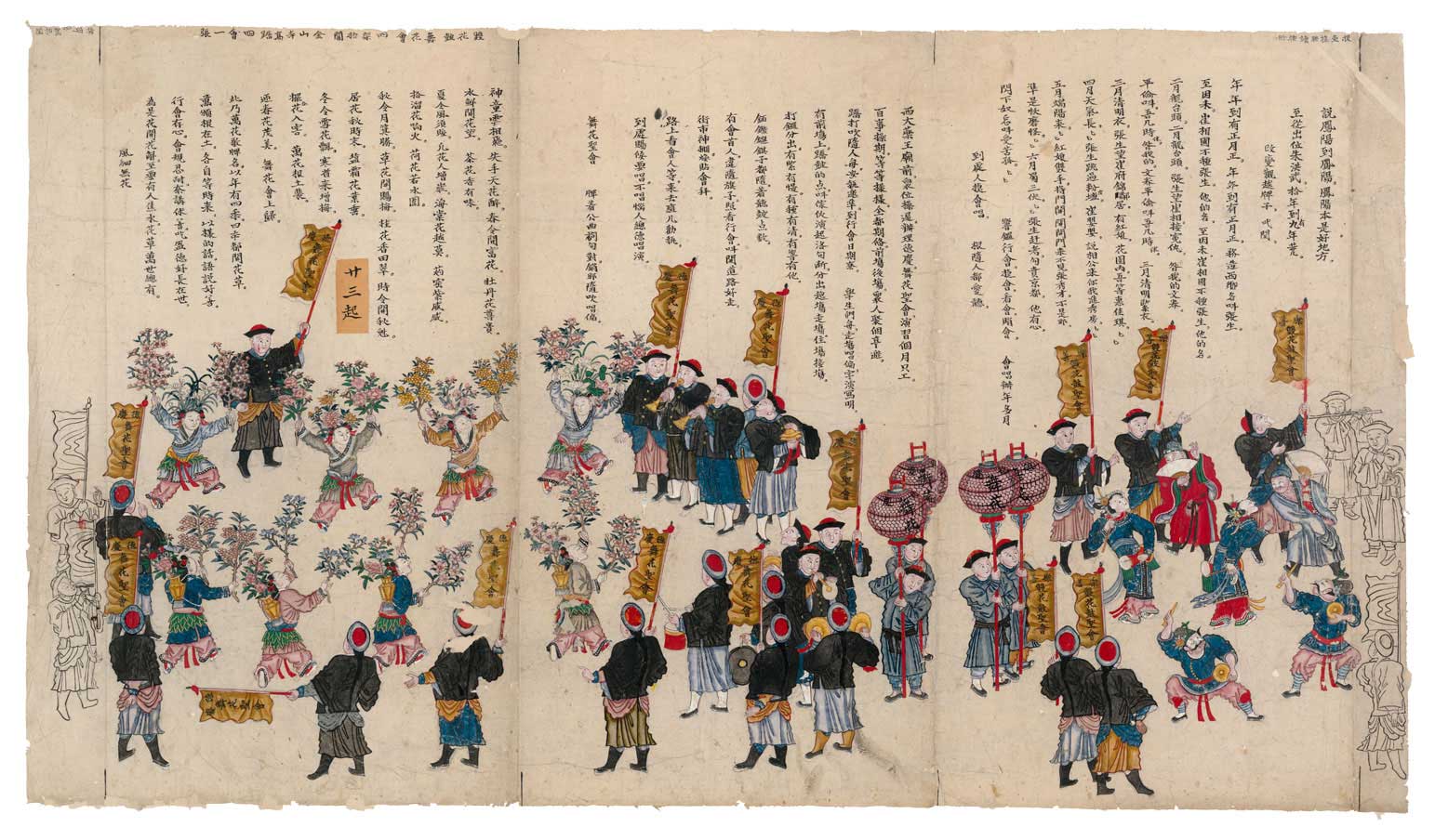 中国的风俗画历史悠久,两宋时期是中国风俗画发展的顶峰时期。至明清时期,由于商品经济的兴盛、市民阶层的壮大和世俗文化的繁荣,风俗画在继承和延续两宋风格的同时,着力描绘乡村世俗和城市平民生活,并显示出传统风俗题材与文人画风的融合。