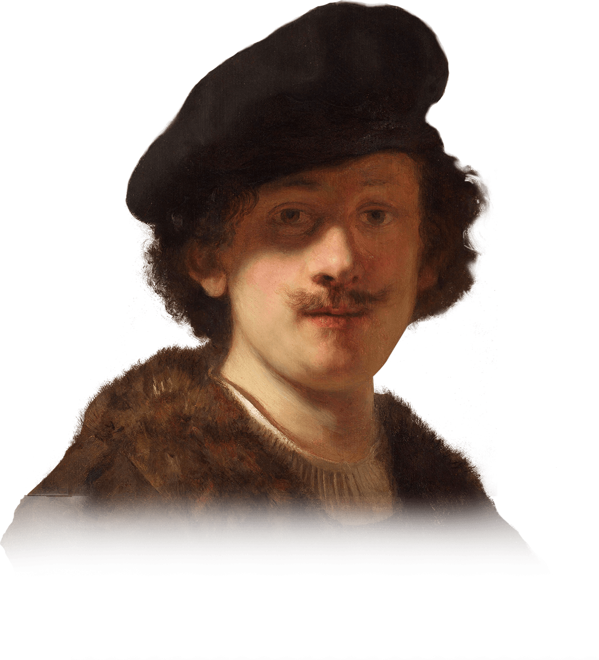 伦勃朗·范·莱因1606年出生于莱顿城,这是一个纺织中心和大学城。他的家庭背景一般,父亲是一位磨房主,但伦勃朗却最终成为了十七世纪荷兰乃至艺术史上最重要、最具开创性的艺术家之一。他在十七世纪二十年代早期曾在莱顿当地的一位画家手下接受初步艺术训练,此后便与阿姆斯特丹历史画家彼得·拉斯曼(Pieter Lastman)共同度过了对他影响深远的六个月。此次展览也展出了彼得·拉斯曼的作品《大卫将约押的信交给乌利亚》(1619年)。伦勃朗从拉斯曼那里学到了作为历史画家的重要原则——描绘古代神话和圣经的复杂场景。同时伦勃朗与他年长一岁的朋友和竞争对手——莱顿艺术家扬·利文斯(Jan Lievens)——的竞争对他的早期发展产生了重要作用。正如奥兰治王子的秘书康斯坦丁·惠更斯对这两位艺术家所作的描述,列文斯因其“大胆的主题和形式”而著称,而伦勃朗则胜于“创新性、坚定的笔触以及真实的情感”。