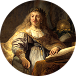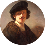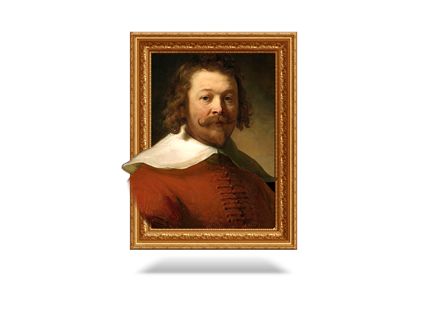 伦勃朗于1631年离开莱顿,前往经济繁荣的文化中心阿姆斯特丹。他加入了艺术商亨德里克·范·乌伦博格(Hendrick van Uylenburgh)的工作室,并依靠为阿姆斯特丹市的名人画肖像而挣得了第一笔酬金。例如,《红衣男子像》(1633年)描绘了一位精英阶层并具有国际化特征的人物,这幅作品在栩栩如生地刻画人像的同时,体现出人物的庄重感和直接性。这一时期伦勃朗的另外一些作品主要是头像画,即通过对人物或头像目标的实际观察来体现人物情感、表情和心理冲突。但总体上,伦勃朗以其历史画家的身份最为同行们所称道。他的里程碑式的作品《书房中的女神密涅瓦》是这一艺术题材的最佳例证。这幅作品将一位当代荷兰女性与古代神话中的密涅瓦女神的形象联系起来。密涅瓦不仅是掌管战争的女神,同时也是智慧与知识女神。这种将普通人与神的形象融合的技法使伦勃朗成为十七世纪历史画家中的翘楚。