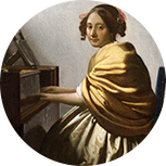 在十七世纪,人们的兴趣逐步转移至描绘上层人物的室内画,以维米尔的《坐在维金纳琴旁的年轻女子》(约1670-1672年)为代表。维米尔对于空间、色彩和光的掌握,体现出了沉浸在自己的世界中的年轻女子演奏维金纳琴的静谧与美好。尽管荷兰风俗画看起来较为写实,但也遵循着艺术对话的传统做法与范式。这些作品都体现出关于日常生活的持久兴趣及艺术创造力。