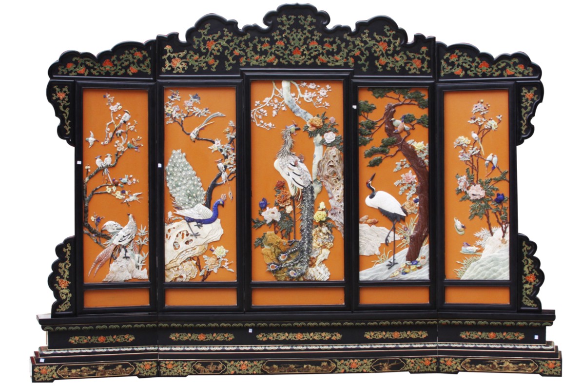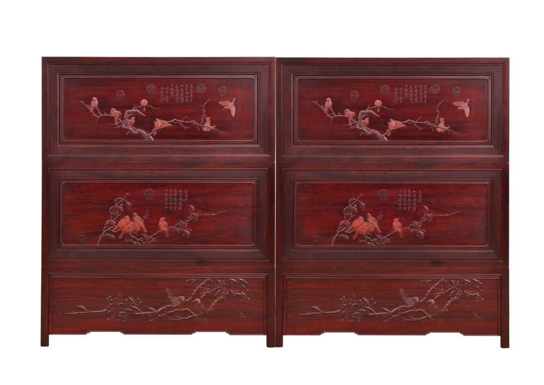 雕漆嵌玉顶箱柜 | 四季花鸟