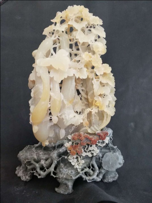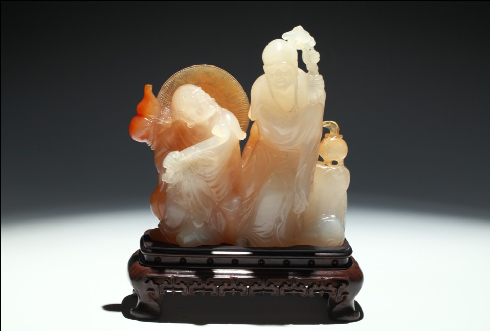 石雕·寿山三色荔枝洞石 | 双罗汉