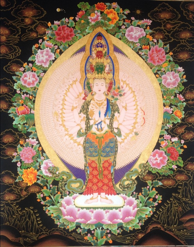热贡唐卡·彩唐 | 水月观音·帝释梵天护法天王像