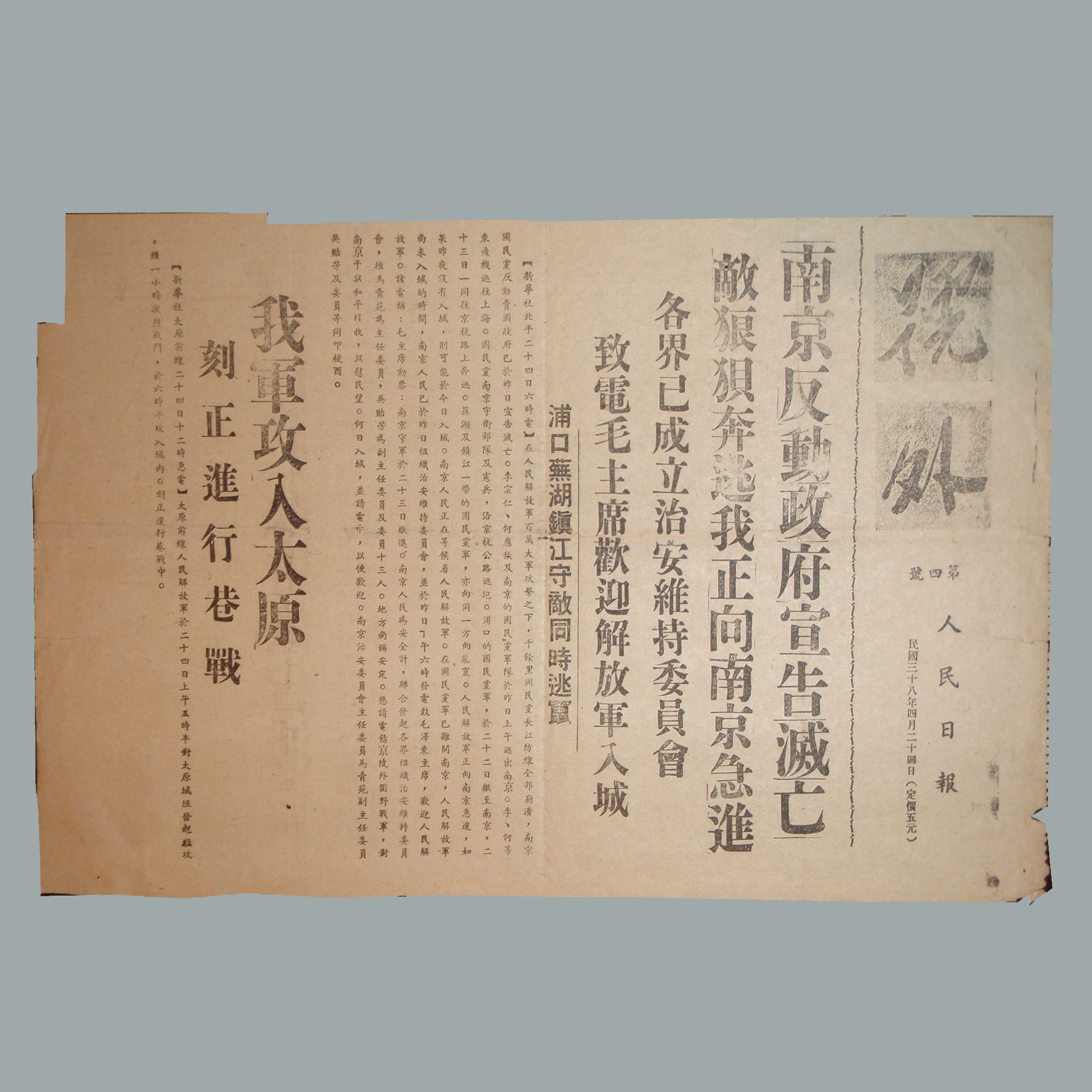 人民日报印发的“南京反动政府宣告灭亡”号外(第四号) 纵25厘米,横40.5厘米