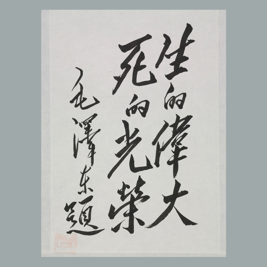毛泽东为刘胡兰亲笔题词——“生的伟大死的光荣”(复制件) 纵32厘米,横22厘米