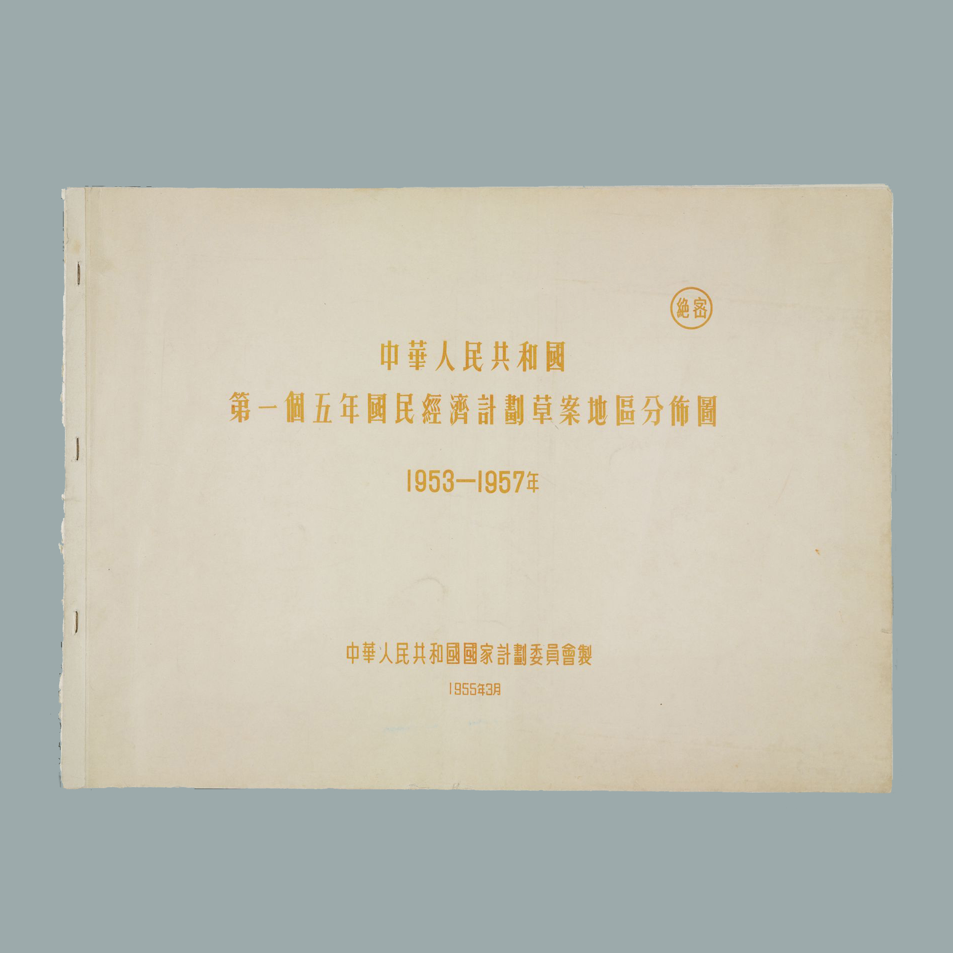 中华人民共和国国家计划委员会印制的《中华人民共和国第一个五年国民经济计划草案图表》(1953— 1957年) 纵27.3厘米,横37.4厘米