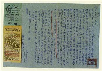钱学森致陈叔通的信函 纵18厘米,横28厘米