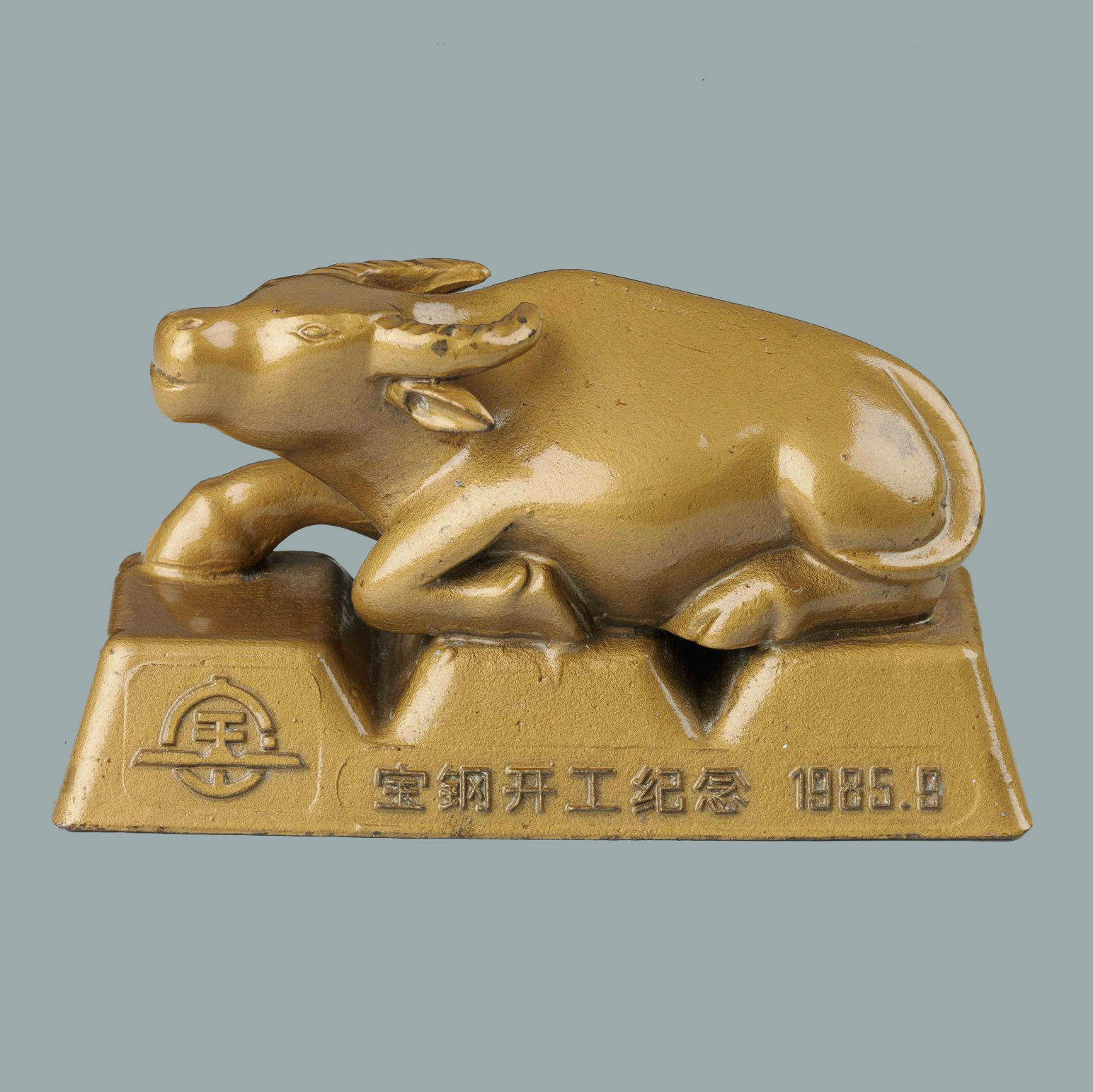 上海宝山钢铁总厂开工纪念物—钢牛 纵25厘米,横25厘米,厚16.8厘米