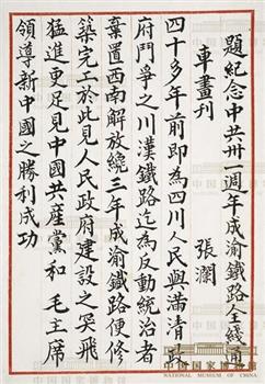 张澜庆贺成渝铁路通车的题词 纵22.2厘米,横14.9厘米