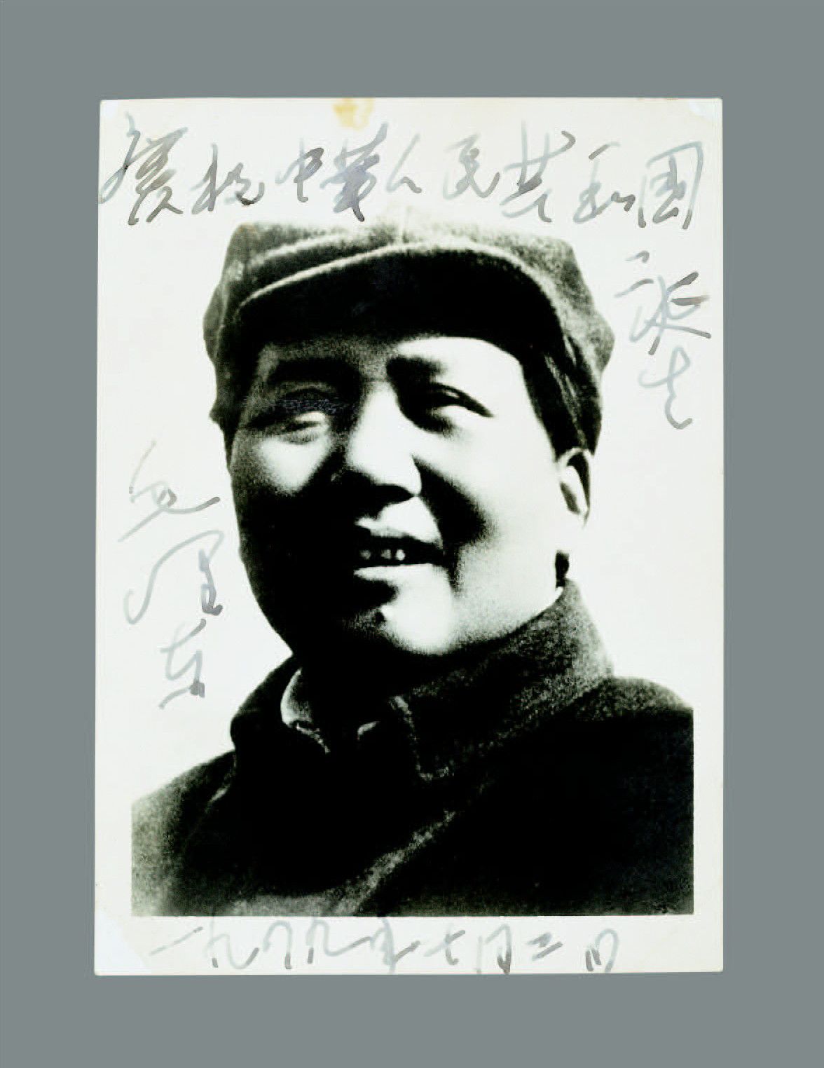 毛泽东题“庆祝中华人民共和国诞生”半身照 纵10.2厘米,横7.4厘米