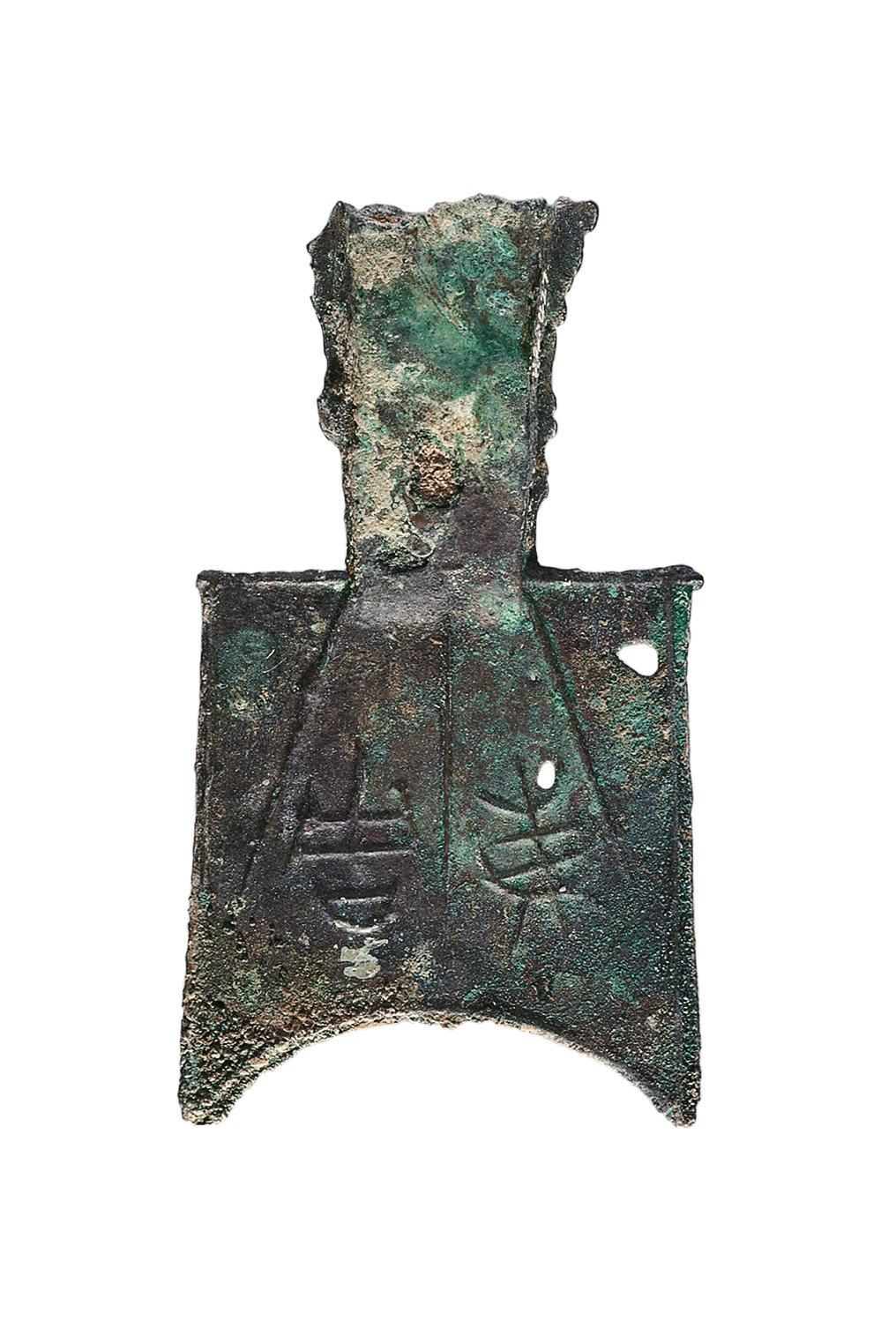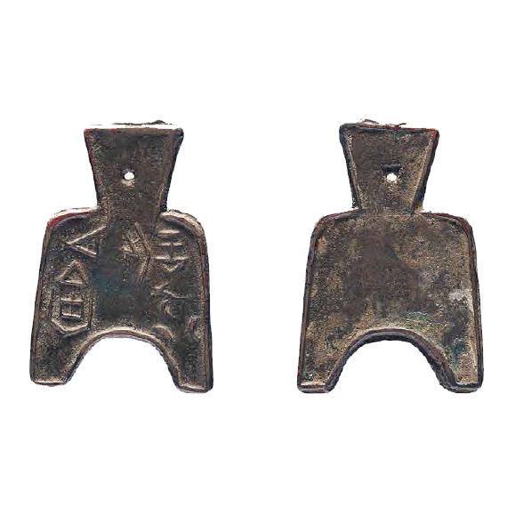 斜肩弧足空首布(三川釿) 高8.8厘米,足宽4.9厘米,重25.15克