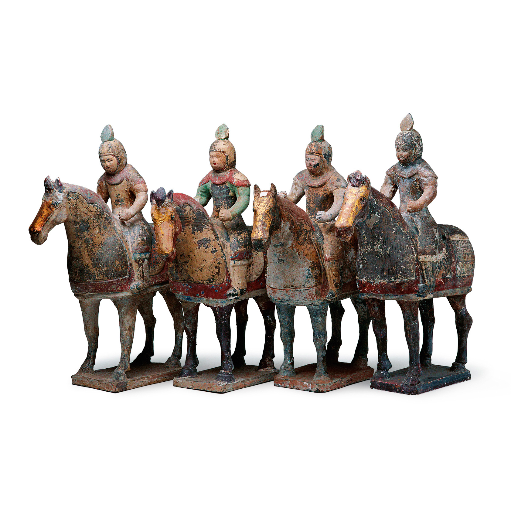 彩绘贴金骑马俑 高33-35厘米,长29.5-32厘米