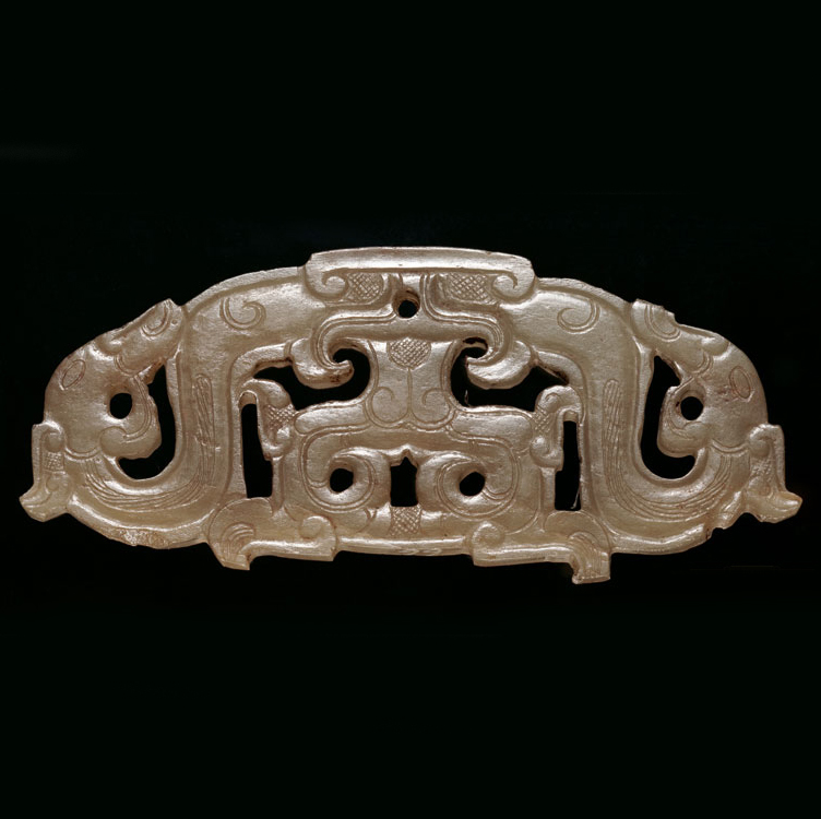 白玉透雕夔龙纹璜形佩长8.9厘米,宽3.4厘米1957年河南信阳长台关一号墓出土