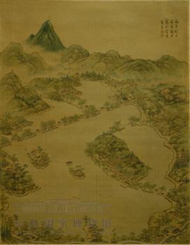 《西湖图轴》 郑岱 作。绢本,设色,纵59厘米,横44.6厘米