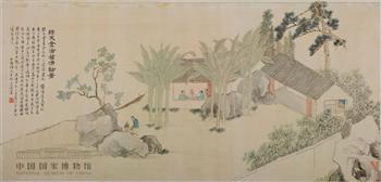 《绿天盦沦茗清话图卷》 项文彦 作。绢本,设色,纵33.5厘米,横71厘米