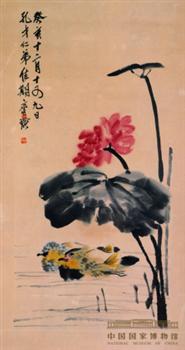 《鸳鸯并蒂图轴》 齐璜 作。纸本,纵97、横46厘米