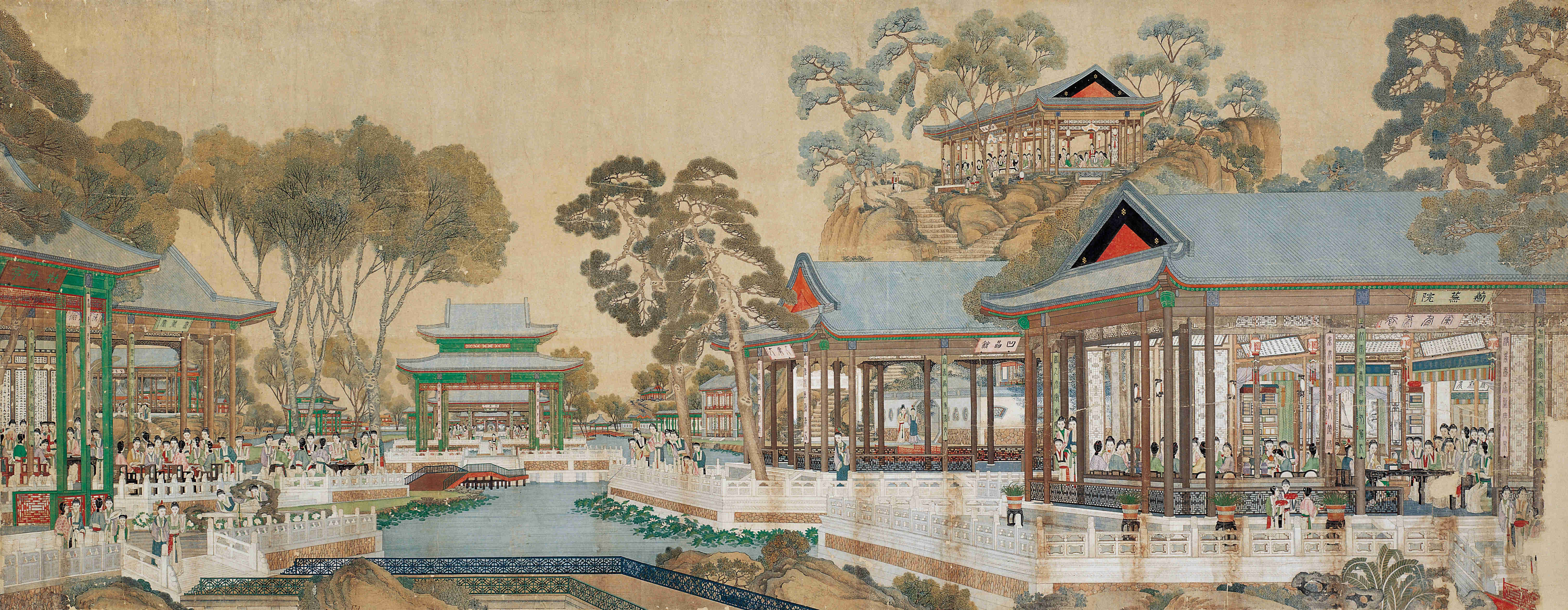 《大观园图》横披 纸本,设色,纵137厘米,横362厘米